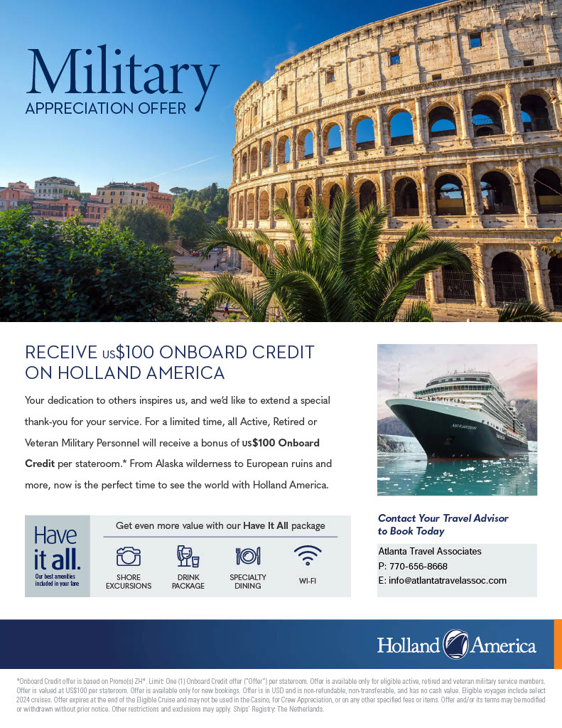 Holland America Line expresses its gratitude to military members with a special appreciation offer: